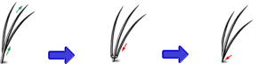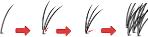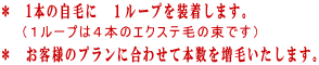 戻しの技術でエクステ毛を再利用。装着から2〜3ヶ月後に自毛が伸びて根元から離れたエクステ毛を根元に戻してボリュームを維持します。